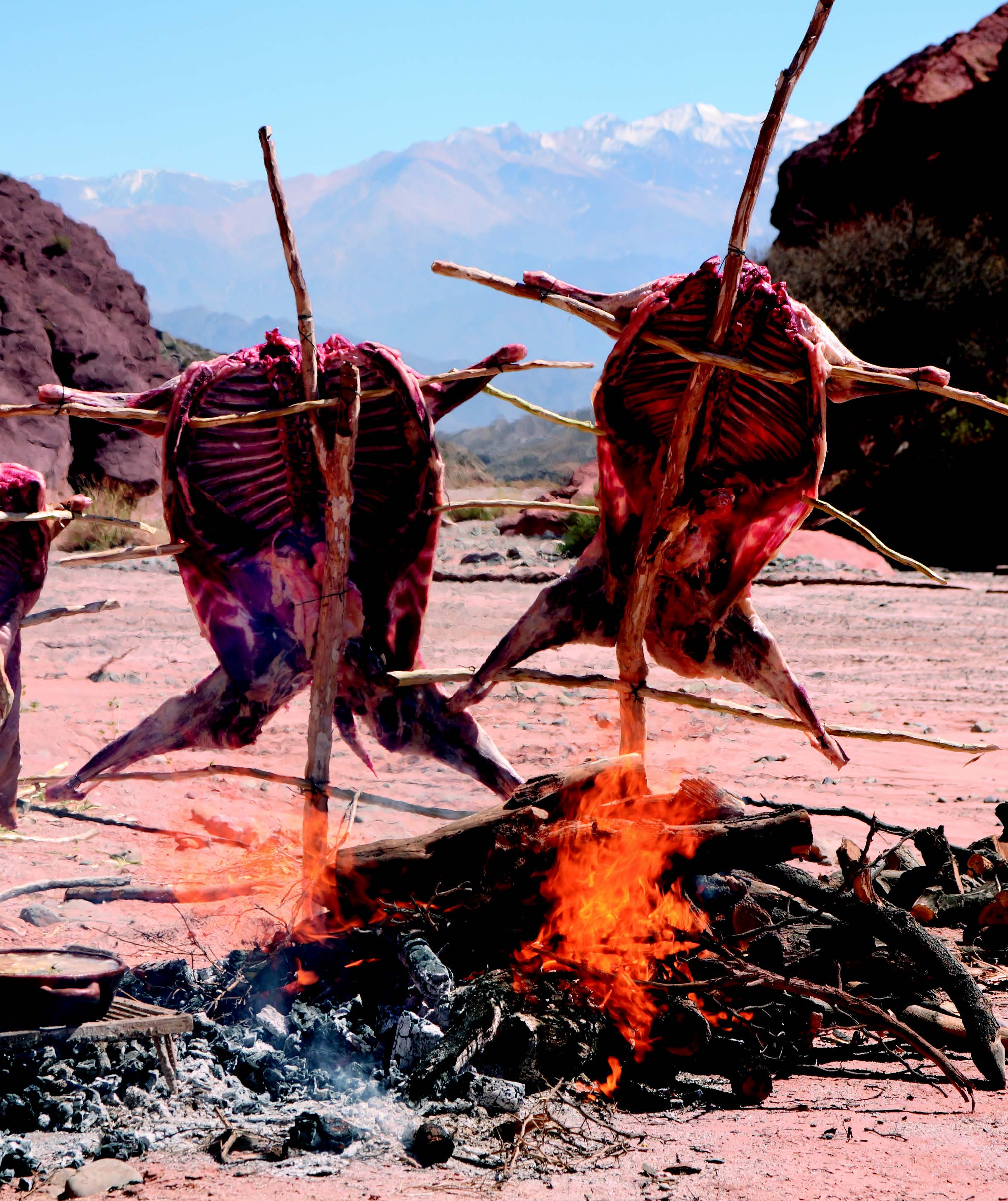 Asado: Lamm, Zicklein und Spanferkel am Spieß mit dreierlei Bohnen