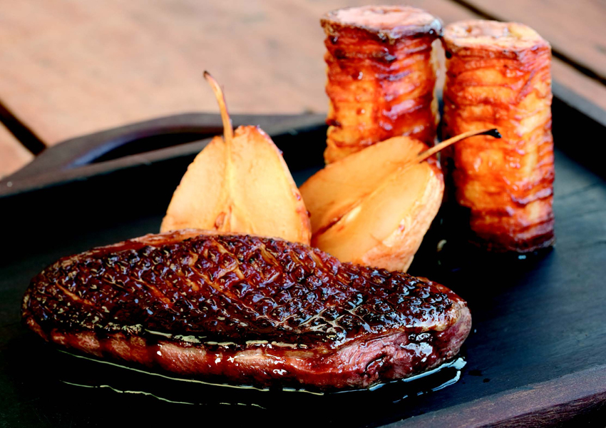Entenbrust mit Birnen in Salzkruste mit Kartoffeln à la Arzak