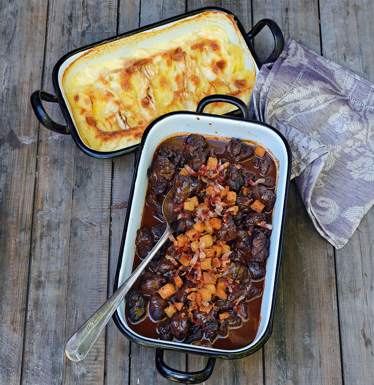 Dachsragout mit Sellerie-Kartoffel-Gratin „al forno“
