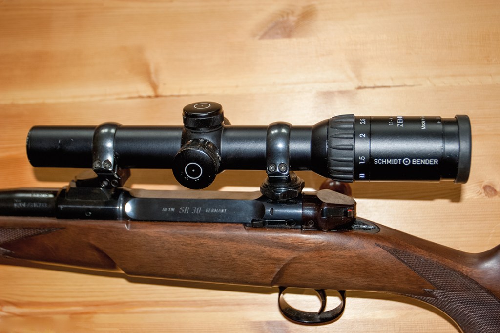 Bei der Wahl der Zieloptik ist zu bedenken, dass viele Schüsse auf Sauen bei mäßigem Licht und auf kurze Entfernung abgegeben werden. Beim Blick durch das Zielfernrohr muss man gerade bei Nacht immer den Überblick über das Geschehen behalten. Sauen sind oft in Bewegung, nach dem Wechsel vom Doppelglas zur Waffe mit Zielfernrohr kann sich die Situation bereits verändert haben. Mit einem variablen Zielfernrohr ist man da auf der sicheren Seite und kann durch eine Änderung der Vergrößerung auf die unterschiedlichen Situationen reagieren. Lässt sich ein variables Glas bis auf 2,5- oder 3-fache Vergrößerung herunterdrehen, ist man bei einer flachen Montage auch für die Drückjagd gut gerüstet.
