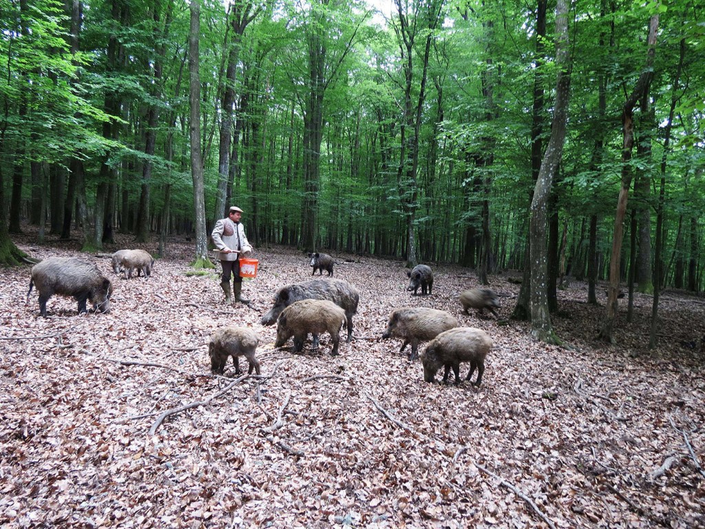 Der Geruchssinn einer Sau ist besonders gut ausgeprägt und sie kann Menschen über größere Entfernungen je nach Windverhältnissen wahrnehmen. Der Wind spielt zwischen Mensch und Kreatur Sau immer eine Schlüsselrolle. Sauen können sehr wohl unterscheiden, mit welchen menschlichen und tierischen Düften – durch Wanderer, Spaziergänger mit oder ohne Hund, Reiter usw. –, die im Revier an bestimmten Wegen bzw. Straßen hinterlassen werden, sie es zu tun haben. Gewohnte, immer wiederkehrende und somit ungefährliche Düfte stören sie nicht. Füttert man Sauen an bestimmten Stellen und zu bestimmten Zeiten, so können sie auch den Geruch des Jägers zuordnen. Bei einer mir vertrauten Rotte muss ich immer dieselbe Kleidung tragen, damit die Sauen auf einen bis fünf Meter an mich herankommen. Wechsle ich meine Kleidung – vor allem meinen hellen Rock – hält diese Rotte, obwohl sie meine Stimme kennt, einen Sicherheitsabstand von gut fünfzig Metern. Ich habe beobachtet, dass kurz, nachdem ich die Futterstelle verlassen habe, die Sauen schon aus den Dickungen gekommen sind.