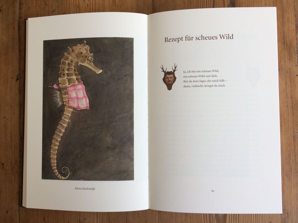 Aber Wigalf Droste und Nikolaus Heidelbach? Die Namen mögen dem einen oder anderen Helden am Herd wenig sagen, sofern man nicht mal einen Blick aus der Küche hinaus in Richtung Kunst & Kultur geworfen hat. Wigalf Droste war (er starb im Mai 2019) ein Autor und Sänger, bezeichnete sich selbst als satirischen Polemiker. Er hat zu dem Buch Wild diverse Textbeiträge beigesteuert, diese reichen von Gedichten bis hin zu Anekdoten und Witzen: