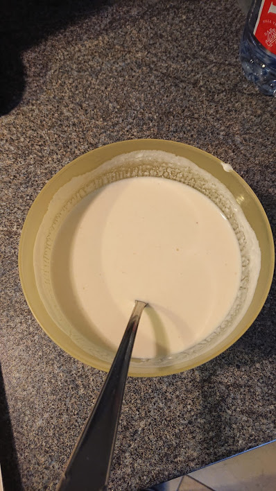 Meerrettich reiben ist so eine Sache für sich. Vergleichbar mit Zwiebelschneiden, nur eben die Hardcore-Variante. Ich beeilte mich also damit, das Taschentuch musste ich danach trotzdem wechseln. Ich war froh, als ich saure Sahne über die Angelegenheit kippen konnte und sich meine Nase und die Augen wieder entspannten. Ich habe nicht den ganzen im Rezept angegebenen Meerrettich eingerührt. Die Schweden sind in der Beziehung wahrscheinlich schmerzfreier. Es ist mit zwei Dritteln, auch für die Gäste, eine oberleckere Meerrettich-Sahne-Soße rausgekommen.