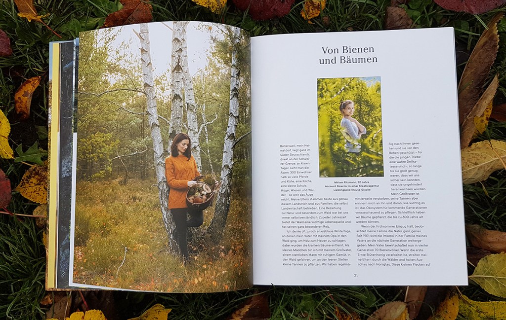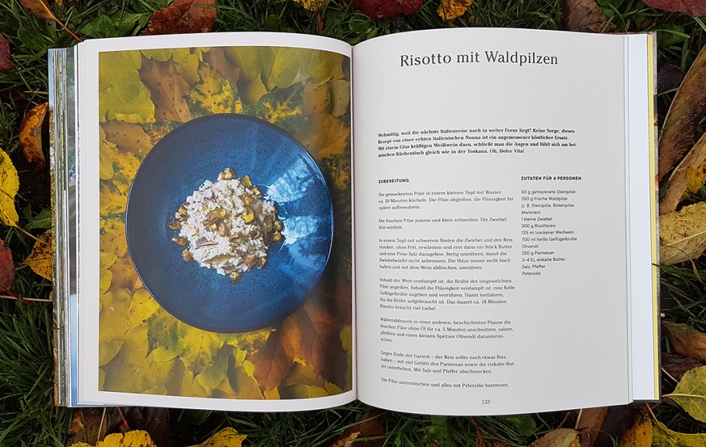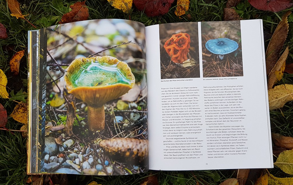 Das Buch Into the Woods: Pilze suchen und Glück finden ist so schick gestaltet wie eine Hommage an Designobjekte. Es weist Aspekte eines Fachbuches und eines Kochbuches auf, vermittelt aber vor allem den Zauber der Pilzwälder. Dies gelingt durch die atmosphärischen und ästhetischen Fotos, eingebettet in ein elegantes Layout. Das ist so gelungen, dass das Pilz-Buch sogar im Layout-Magazin PAGE empfohlen wird.