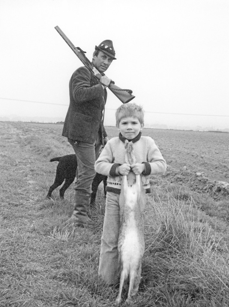 Nur ein Jahr später beteiligte sich Max schon aktiver am Frettieren. Zu dieser Zeit führte er ein Plastikpatronengewehrchen, das ihm sein Freund Helmut, der Friseur, geschenkt hatte. Jetzt lauerte Max, den ich wieder zwischen meine Beine postiert hatte, wild passioniert auf das Springen der grauen Flitzer. Meist leiteten dann Maxens Pätscher die Kanonade auf das schnelle Wild ein. Dabei schoss der Minijäger so lange, bis das Wild roulierte. Wurde es gefehlt, pätschte Max hinterher, bis er keine Bewegung mehr sah. Er war dabei so in Rage, dass er zunächst das Schießen seiner Waidgenossen überhaupt nicht zur Kenntnis zu nehmen schien. Entkam ein Kaninchen, schimpfte Max: „Des versteh’ ich net, ich war doch so gut druff.“ Eine Zeit lang ließ sich Max das Zusprechen der Kaninchen an den jeweiligen Schützen oder den vermeintlichen Schützen gefallen, dann schritt er auf seine Weise ein. Am Ende einer wüsten Kanonade trat Max hervor, hob seine Hand und sagte ganz feierlich: „Halt meine Herren, das war mein Kanin, es roulierte auf meinen Schuss hin.“ Selbstverständlich wurde dem Schützen das Wild zugesprochen. Er nahm es fortan von Stand zu Stand mit. Später musste ich es auch am Löffel markieren, um jegliche Verwechslung auszuschließen. Max wollte es selbst zum „Reparator“ bringen. Fremdwörter klappten bei ihm verständlicherweise noch nicht so ganz.