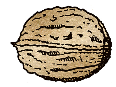Wie die Hasel beschenkt uns die Echte Walnuss mit großzügigen Gaben. Sie ist hübsch mit ihrer glatten, olivbraunen Rinde, die mit zunehmendem Alter silbrig grau wird, ihren großen, grünen, zusammengesetzten Blättern (die aus vielen einzelnen Fiederblättchen an einem Hauptstiel bestehen), ihren hängenden männlichen Kätzchen und ihren weiblichen Blüten in Blütenständen von je zwei bis fünf, aus denen sich die Früchte mit ihren grünen Schalen entwickeln. Während die Nüsse in ihnen reifen, färben sich die Schalen dunkel. Sie sind eines der ältesten und gesündesten Nahrungsmittel der Menschheit – eine viertel Tasse Walnüsse enthält die komplette empfohlene Tagesration Omega-3-Fette und Antioxidantien. Ihr Verzehr hilft Herzkranken, mindert möglicherweise das Risiko von Prostata- und Brustkrebs, ist gut fürs Gehirn und kann Diabetes vom Typ 2 entgegenwirken. Forscher haben außerdem herausgefunden, dass sie Melatonin enthalten, das den Schlaf-Wach-Rhythmus von Mensch und Tier reguliert.