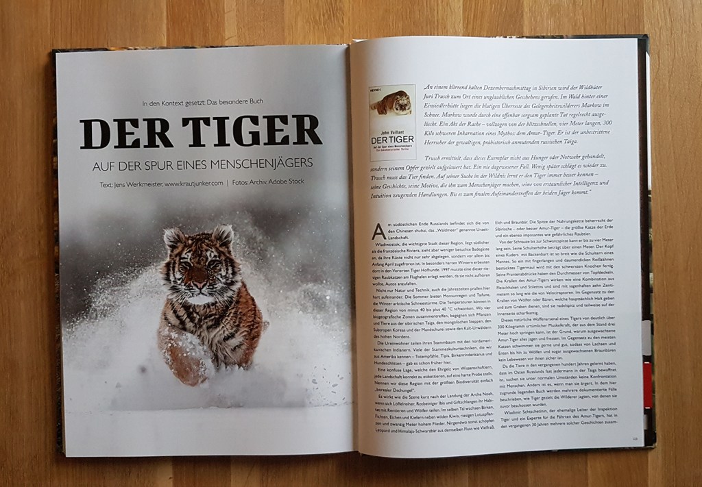 Meine Buchvorstellung von Der Tiger – Auf der Spur eines Menschenjägers (siehe: https://krautjunker.com/2018/12/11/der-tiger-auf-der-spur-eines-menschenjaegers/), wurde in leicht überarbeiteter und gekürzter Form in dem Magazin Jagdzeit International, Ausgabe 4/2019, veröffentlicht.