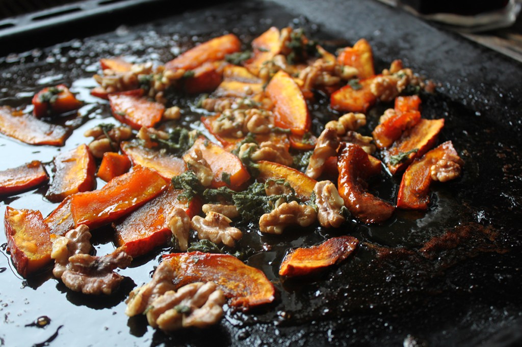 - Geröstete Kürbisscheiben mit Salbei und Walnüssen (Rezept aus dem Buch)
