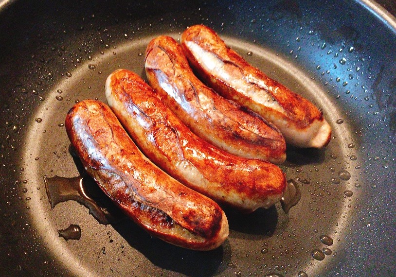 Wenn die Wurst rundum die gewünschte Bräune hat, zusammen mit allen anderen Komponenten servieren.