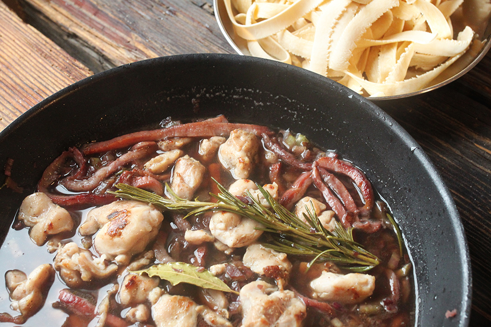 1 Portion Pappardelle von 250 g Weizenmehl, 1 Ei und Wasser nach Angabe.