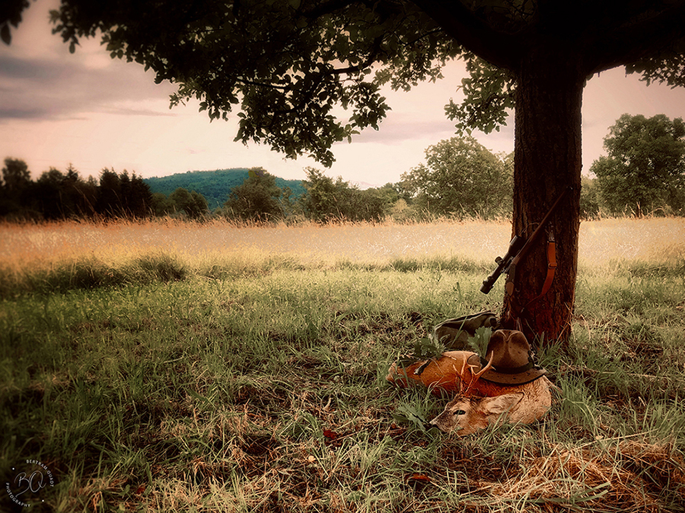 Das Frühjahr lief zäh an. Die Eisheiligen kamen pünktlich, und gefühlt schloss sich die Schafskälte direkt an. Bis der alte Rücksetzer fiel, brauchte es gute zwanzig Versuche morgens und abends, und als es am jenem kalten Morgen doch klappte, da ließ er mir keine zehn Sekunden Zeit. Es war einer der Momente, wo beim ersten Anblick klar ist, dass der Bock passt. Der Schuss war nicht weit, aber der Winkel spitz. Die Kugel ging sauber hinterm Blatt hinein und auf dem Stich raus. Eine kurze Todesflucht in die Brombeeren. Eine lange Totenwacht.