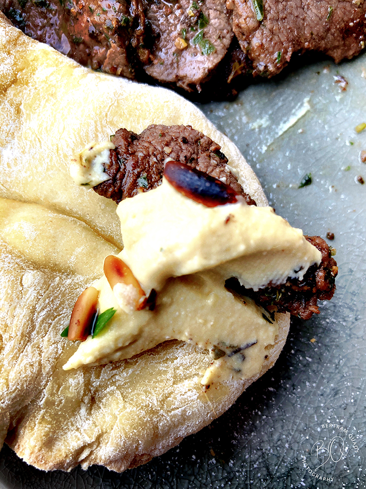 Hummus Kawarma ist normalerweise Lamm in einer zitronenbasierten Marinade auf schönem, cremigem Hummus, auf der Pita zu essen. Klassische Mezze. Aber weil bei der besten Ehefrau von allen bei keinem rezept ein Stein auf dem anderen bleibt – was eigentlich alles nur noch besser macht – gibt es hier auch keine Rezeptur, sondern nur eine grobe Anleitung.