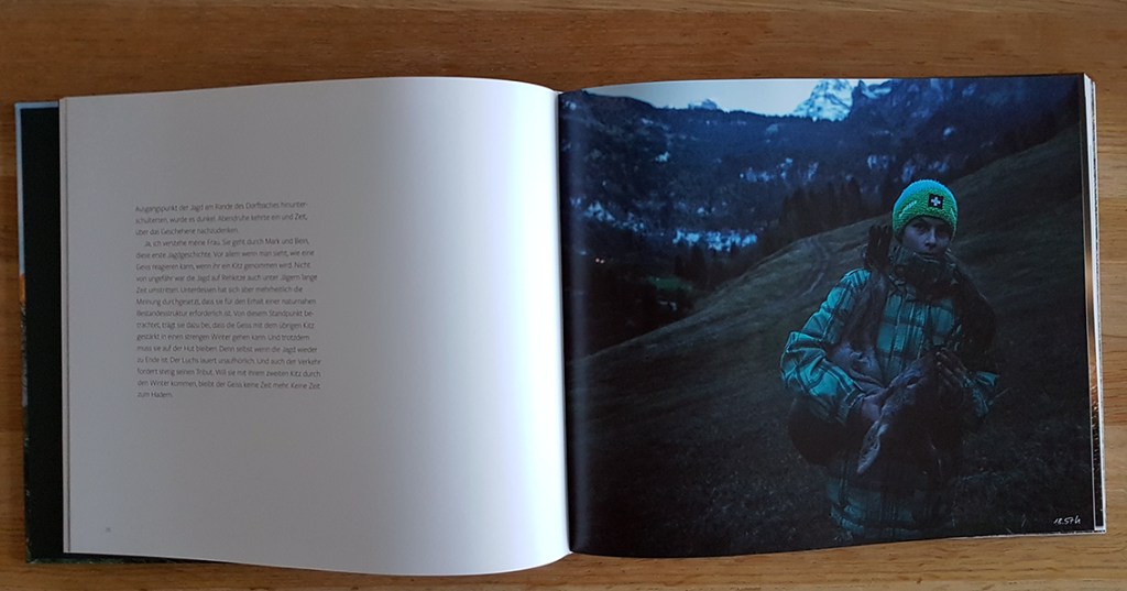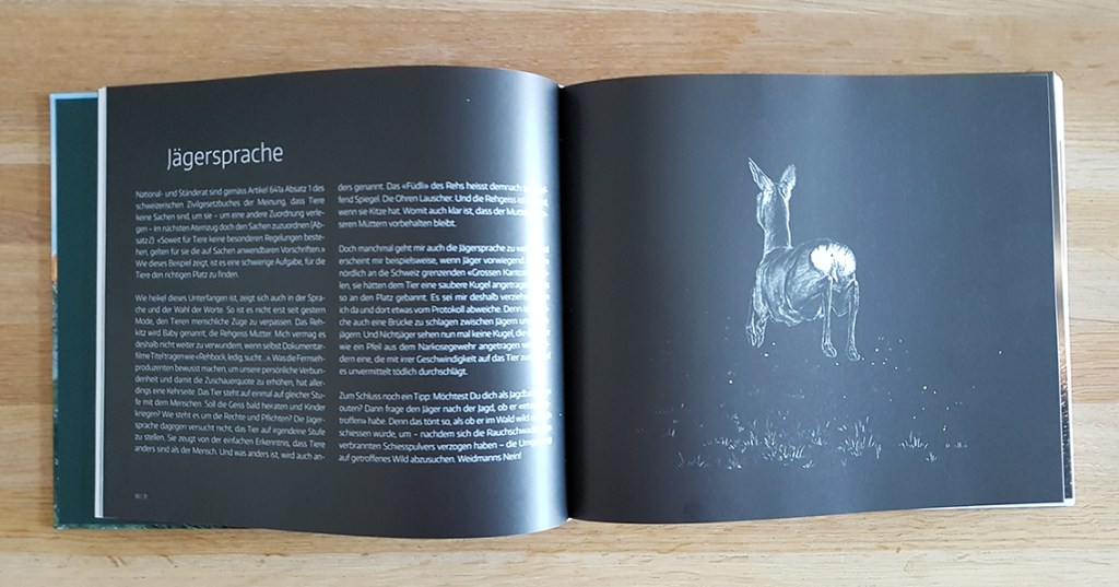 Jagd – Momente prachtvoller Vergänglichkeit ist vom Format, Layout und Inhalt ein ungewöhnliches Buch aus der Schweiz. Ein guter Einstieg, finde ich, denn ich mag die Schweizer Kultur und schon seit einiger Zeit bevorzuge ich auch bei den Nachrichten aus Deutschland den bürgerlichen Schweizer Blick auf unsere aus dem Ruder laufende Erregungsgesellschaft, wie sie Peter Sloterdijk nennt.