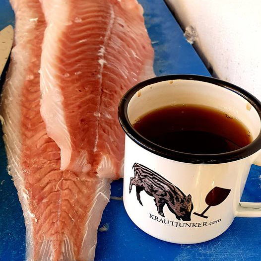 Ein Kracher ist dieses Rezept, was ich unbedingt noch nachkochen möchte. Ich kann es mir statt mit Lachs auch mit einem Rehrücken oder einem anderen zarten Fleisch vorstellen.