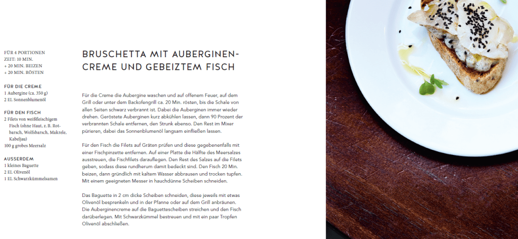 Es folgen einfache, aromatische Seafood-Rezepte mit Muscheln, Garnelen, Jakobsmuscheln, die alle irgendwie nach Sommer und Urlaub schmecken. Beilage wie Salzzitronen, eingelegter Fenchel, Babaganoush, Peperonipüree, ein paar Saucen sowie süße Desserts runden den Rezeptteil ab.