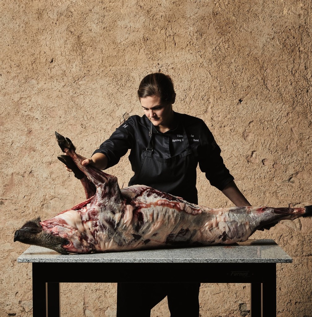 Mit unglaublichen Ergebnissen: In ihrer Küche zelebriert Viki Fuchs die klassische Wildküche mit Respekt – entwickelt sie aber auch sensationell mit internationalen Einflüssen weiter: asiatisch inspiriert als Wildschwein Dim Sum, Fasanen-Curry und Wildenten-Pho oder italienisch grundiert als Rehtello Tonato, Spaghetti alle vongole mit Wildschweinpanchetta oder Ravioli vom confierten Wildschweinbauch.