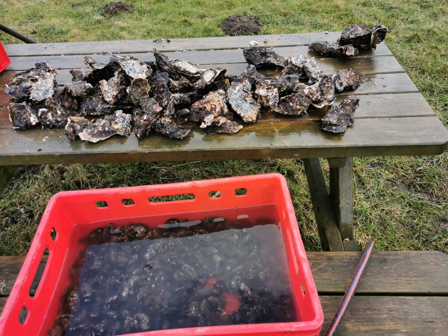 Es gibt auch andere Möglichkeiten um an Austern zu kommen. Axel ist da extrem erfinderisch und weiß auch, wo sich die größeren Exemplare finden lassen.