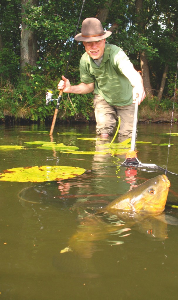 Über den richtigen Zeitpunkt des Anhiebs gegen die Richtung der fahrenden Pose gab es verschiedene Ansichten und der Erfolg war sehr oft vom richtigen „Gefühl“ abhängig und davon, ob sich zwei Maden oder ein größerer Wurm am Haken befanden. Die Schleien waren immer da, aber nicht immer einfach zu bekommen, denn auch sie schienen sich Zeit zu nehmen mit dem Schlucken des Köders. Es schien so, als ob sie darüber nachdächten, ob sie den im Maul herumgetragenen Wurm endgültig einschlürfen sollten. So konnte es geschehen, dass von 10 Anhieben nur einer eine Schleie an den Haken brachte, und das Experimentieren mit verschiedenen Posen, Ködern, Hakengrößen und Bleigewichten nahm unsere Aufmerksamkeit in Anspruch. Aber irgendwann war es dann soweit, und die erste der ansehnlichen Schleien konnte über den Unterfangkescher geführt, im Sitzen herausgehoben und schweigend vom Haken gelöst werden.
