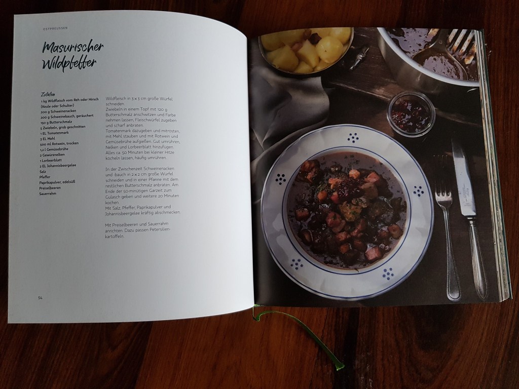 Wer noch in den neunziger Jahren die Abendnachrichten im bayerischen Fernsehen sah, dem wurde der Wetterbericht anhand einer Karte von Deutschland in den Grenzen von 1937 präsentiert. Nun sind mehr als dreißig Jahre vergangen und inzwischen wird auch in Bayern die Oder-Neiße-Linie als östliche Grenze Deutschlands anerkannt. Es gibt zwar immer noch Traditionsvereine, welche Brauchtum und Trachten der Deutschen aus dem Osten pflegen, aber die Zahl von Menschen, die sich in erster Linie als Deutschbalten oder Schlesier begreifen, wird geringer. Was aber weiterhin fortlebt, ist die kulturelle Tradition der Menschen, die seit Jahrhunderten als Deutsche im östlichen Europa lebten und vereinzelt immer noch dort leben. Das „Haus des Deutschen Ostens“, eine Einrichtung des Freistaates Bayern, leistet mit der Herausgabe dieses Kochbuchs hierzu nun einen kulinarischen Beitrag.