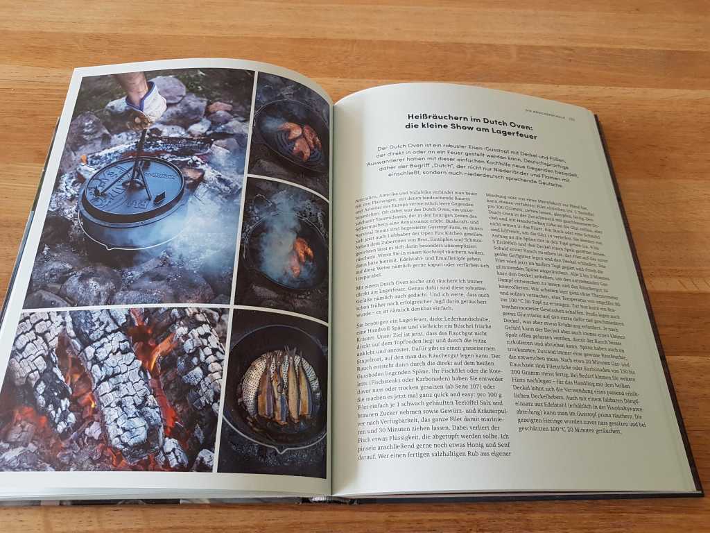 [KRAUTJUNKER-Kommentar: Mit der Praxis des Fischeräucherns habe ich mich bis dato noch nie selbst praktisch auseinandergesetzt. Dass der Räucherschrank die Königsklasse ist, war mir schon klar. Dass ich auch im Kugelgrill und im Dutch Oven Fische räuchern kann, darüber hatte ich noch gar nicht nachgedacht. Das Kapitel Die Räucherschule geht von S. 125 bis 200 und ist wirklich augenöffnend.]