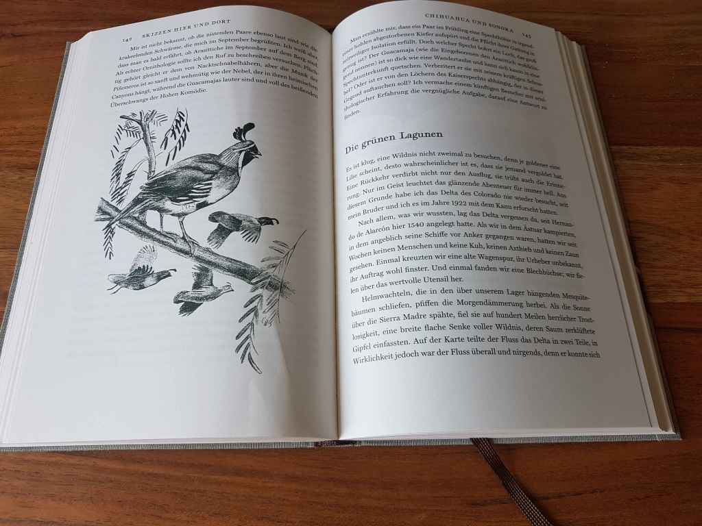 Der zweite Teil mit dem Titel Skizzen hier und dort beinhaltet Reisebeschreibungen von Jagdausflügen sowie Essays die in anderen Teilen der USA sowie in Mexiko entstanden. Er beginnt seine seine Gedanken über die Ökologie und die Naturräume tiefergehend zu beschreiben und verwebt dabei Naturwissenschaften mit Philosophie.