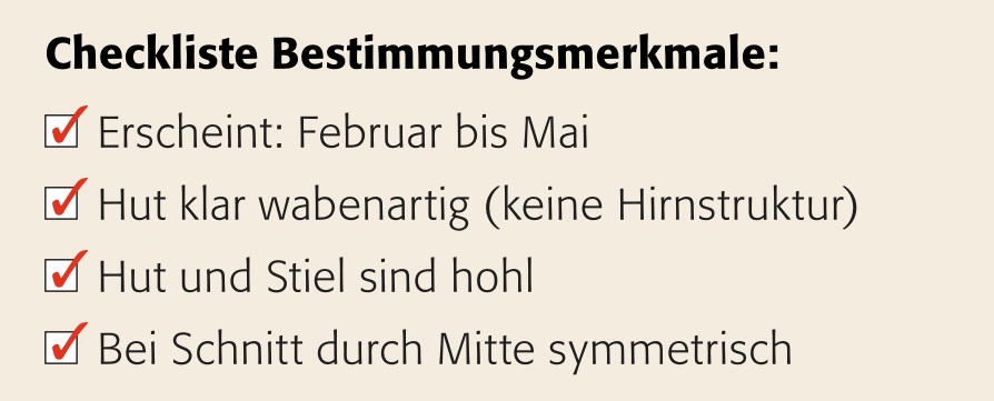 Gemäss einer überlieferten Regel kündigt der erste Donner im April die Morcheln an. Dann ist es jedoch in der Regel zu spät. Bei günstigen Bedingungen ist der erfahrene Morcheljäger bereits Ende Februar auf der Hut und glast den Waldboden konzentriert nach den wabenartigen Hüten ab. Die Morchel ist wie der Leopard eher selten. Der Preis für die Mühe ist Pilz[1]genuss vom Feinsten, nur die Krause Glucke reicht in Tiefe und Intensität an die Morchel heran.