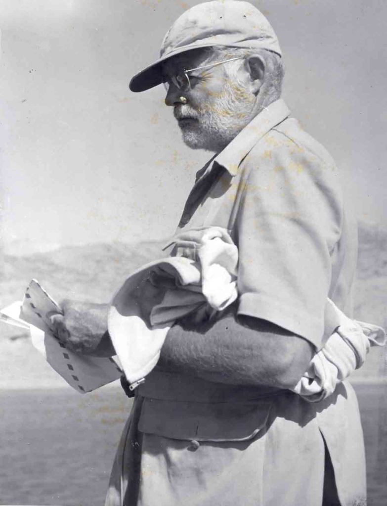 »„Hemingway hat Narben vom Kopf bis zur Spitze seines rechten Fußes“, meint der Sozialpsychologe José Maria Gatti aus Buenos Aires. „Man kann sagen, dass die Geschichte seines Lebens auf seinem Körper aufgemalt ist.“ Nur am Meer findet er Linderung für seine Wunden.«