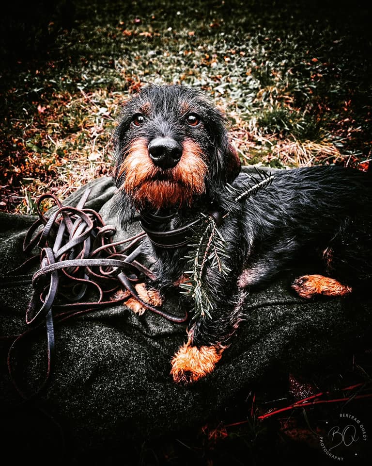 Bald ist Wintersonnwende, damit ist für mich Hahn in Ruh auf Drückjagden. So halte ich das, weil ich das wiederkäuende Schalenwild im Stoffwechseltief, das jetzt einsetzt, nicht unnötig aufmüden will – dem Wild und dem Wald zuliebe. Ansitze mag es noch den ein oder anderen geben, sicher aber noch viele Übungsfährten für Traudl und mich. Bis wir die nächste angehen, wird der kleine Bruch, den ich ihr oben in der Dickung an die Halsung genestelt habe, da bleiben, wo er ist, wird an Halsung und Schweißriemen neben der Eingangstür hängen. Da sehe ich ihn jeden Tag. Das ist mein Adventskranz.