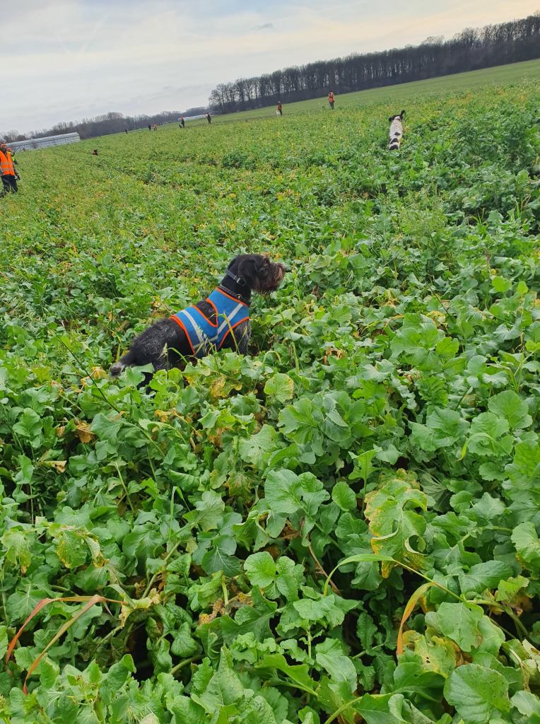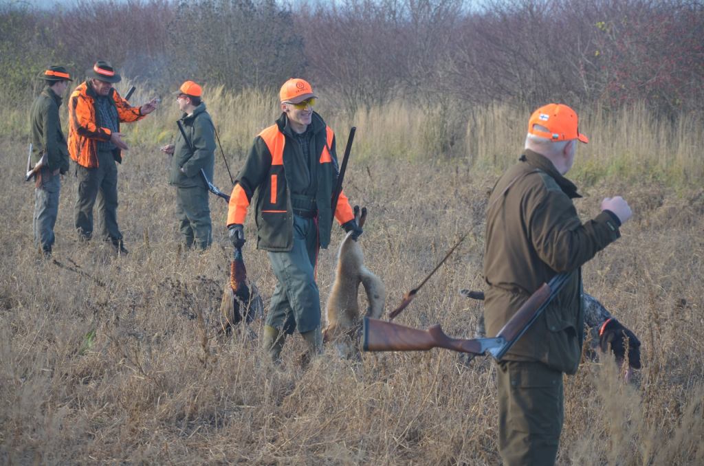 Fasanenhähne sind diesmal eher der erlaubte „Beifang“. Das Wetter meint es nicht ganz so gut mit den Jägern wie bei der Fasanenjagd. Die Sonne lässt sich nur gelegentlich blicken. Mehr Jäger, mehr Hunde und weniger Gründünger. Hasen sitzen nicht gern in dem taunassen Zeug und wenn doch, kann man nicht darauf schießen, weil man sie erst sieht, wenn sie aus dem „Dschungel“ auf den blanken Acker sprinten. Rübenfelder, Maisstoppel, Winterweizen und Weite.