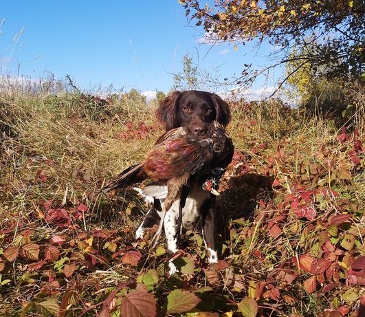 Einige stürzende Hähne und gelegentlich ein Anhalten des ganzen Treibens, wenn Herr und Hund den soeben vom Himmel geschossenen Hahn im Dünger suchen. So viele Fasanen sind nicht im Gründünger. Das müssten mehr sein.