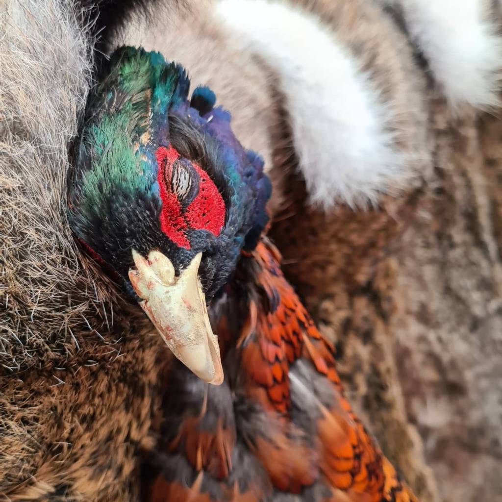 Aber vielleicht ist er zu nass. Der Mais ist trocken, von etlichen Fasanen offenbar vorübergehend bewohnt und in diesem Jahr mehr als 3 Meter hoch. Nicht gut zum Schießen für die Hundeführer, die den Mais durchkämmen. Aus ihm steigen die Fasanen himmelhoch, werden von den Flanken- und Vorstehschützen anvisiert. Zu weit, zu hoch, der Finger bleibt gerade. Passt, der Schuss bricht. Anerkennende Rufe und hochgereckte Daumen quittieren die Meisterschüsse auf den himmelhoch und pfeilschnell fliegenden Vogel, Fluchen und Kopfschütteln die weniger erfolgreichen. Das ist gar nicht einfach hier. Etliche der hohen, schnellen Vögel entkommen. Nicht schlimm, meint der Beständer. Die Hähne sollen ihre Chance haben. Die haben sie. Das sind nur wilde Fasanen, die im Gegensatz zu ihren Aussetzverwandten hervorragend fliegen. Der Fasanenbestand übertrifft den aller umliegenden Reviere. Aber das kommt nicht von selbst. Regelmäßig beschickte Fasanenschütten und Fasanentränken in dichten Einständen, Winterfutter auf den Feldern und Kurzhalten der „Räuber“ sind dafür verantwortlich.