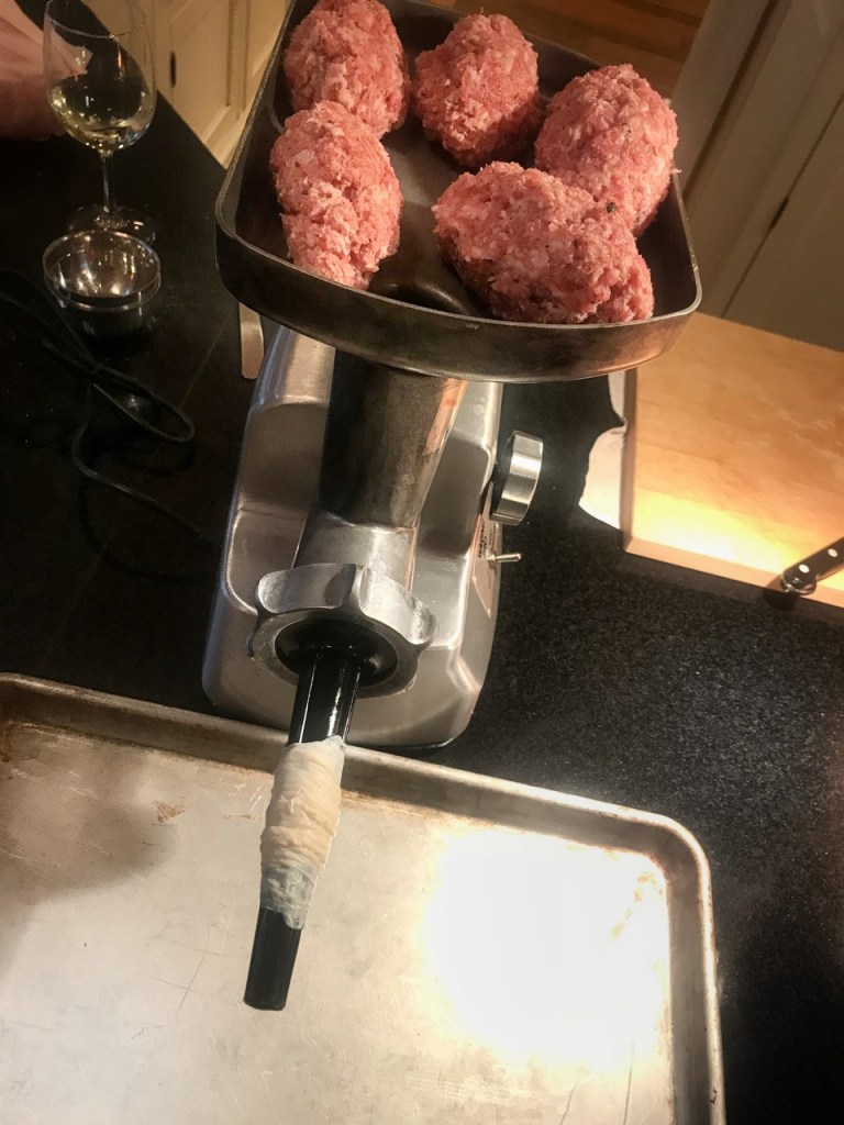 1 kg Schweinenacken halbgefroren, in Stücken die in den Wolf passen