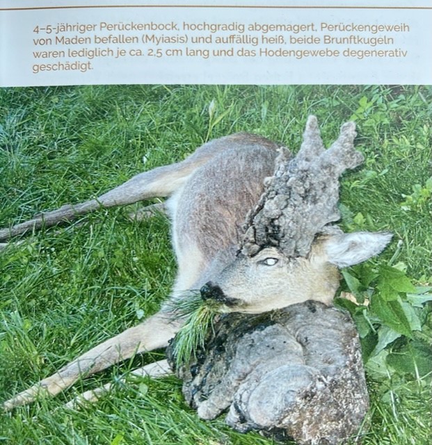 Ausführlich aufgearbeitet werden im Taschenbuch Der Wildtierarzt ermittelt, erschienen 2021 im Leopold Stocker Verlag GmbH, Graz, vom österreichischen Jäger und Veterinär, Armin Deutz, nebst des zitierten Abschnitts zur Geweihbildung die Themen Schalenkrankheiten, Zahnmissbildungen, Trächtigkeitsprobleme, Tumoren („Krebs“), Zoonosen (Infektionskrankheiten zwischen Mensch und Tier), Wilderei, Wildseuchen wie die ASP, Aujeszky etc., Erkrankungen durch Parasitenbefall, Wildbrethygiene und sogar auf spezifische „Berufsrisiken“ der Jagdhunde wird eingegangen.