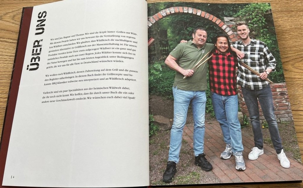 Die drei Autoren Jan, Ragnar und Thomas sind die ohne Frage kreativen Köpfe des Start-ups Grillen mit Wild. Sie haben sich auf die Fahne geschrieben, Wildbret online zu vermarkten. Auf Ihrer Seite erklären sie, was Wildbret ist, wo es herkommt, wie es auf unsere Teller kommt und was man alles daraus machen kann. Das finde ich richtig super. Weil auch ich der Meinung bin, dass kein anderes Fleisch unserem heimischen Wildbret „das Wasser reichen kann“. Ihr Buch verfolgt das gleiche Ziel. Wildbret einer Zielgruppe näher zu bringen, zu der ich, das merke ich bald, aber nicht gehöre.