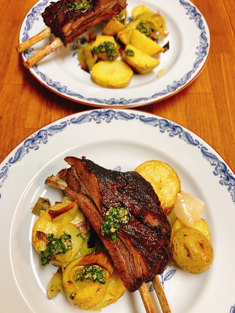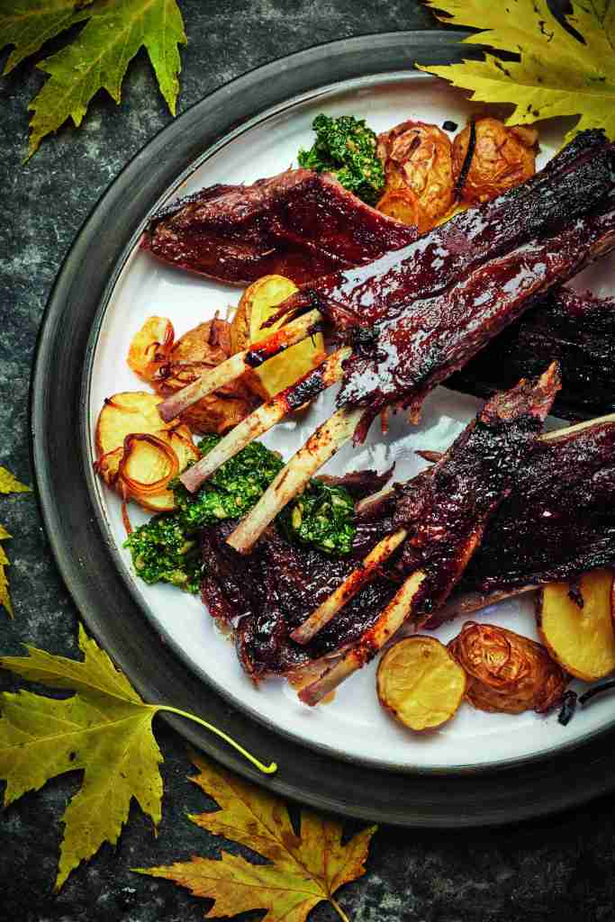 Die Rippen in Tranchen schneiden und zusammen mit den Ofenkartoffeln und dem Pesto servieren – ein Genuss!