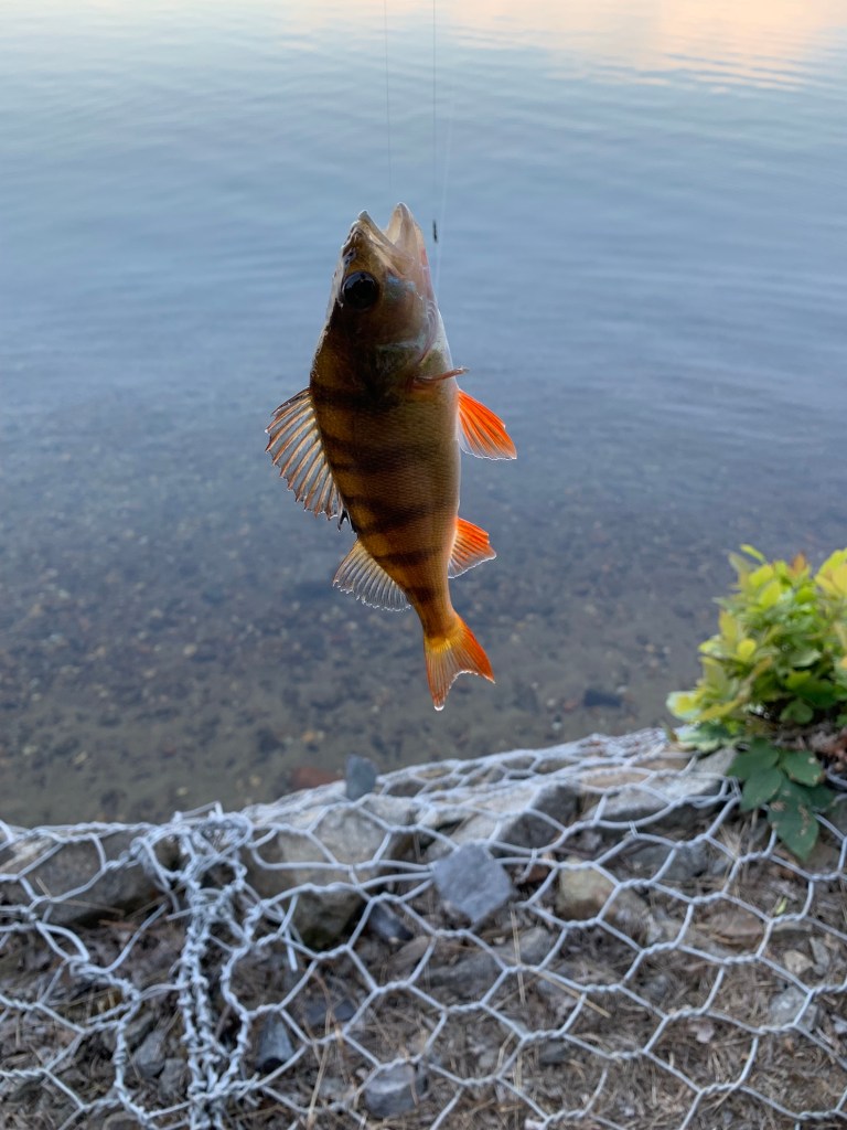 Meist war es ein Biss, von denen ich aber bei weitem nicht jeden haken konnte. Aber die Fische, die ich landen konnte, waren das, was ich wollte! Es waren fast ausnahmslos Barsche von 15-25 cm Länge. Die kleinen Räuber wurden offenbar durch die Ködergröße aussortiert. Die ganz Großen konnte ich leider nicht überzeugen zu zubeißen, die sind wohl auf andere Köder aus.