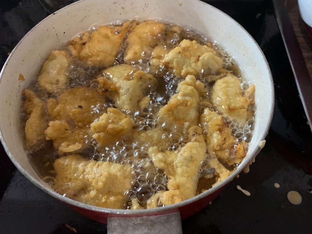 Das Mehl mit dem Bier, Ei und etwas Salz verrühren und ca. 30 Minuten stehen lassen. Das Öl oder Fett in einem kleinen Topf erhitzen und den Teig nochmals kräftig durchrühren. Die Filetstücke durch den Teig ziehen und einzeln in das heiße Öl/Fett geben.