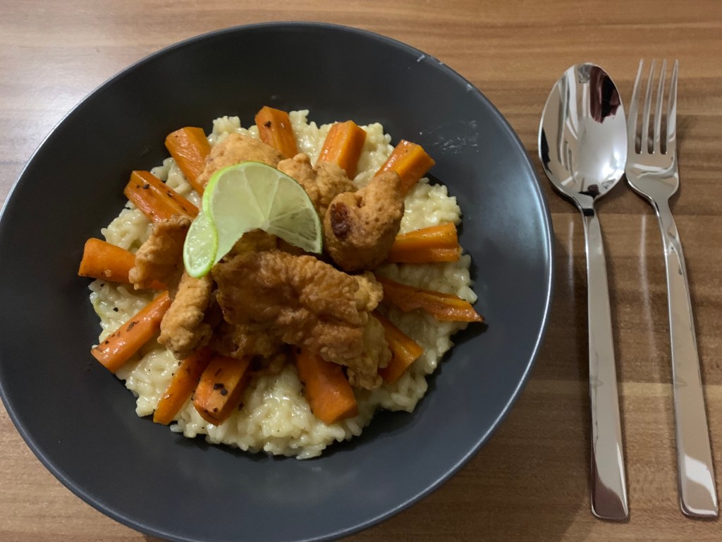 Ab und an wenden, bzw. durchrühren. Gegen Ende mit Salz, Pfeffer, Limettensaft und -abrieb abschmecken.