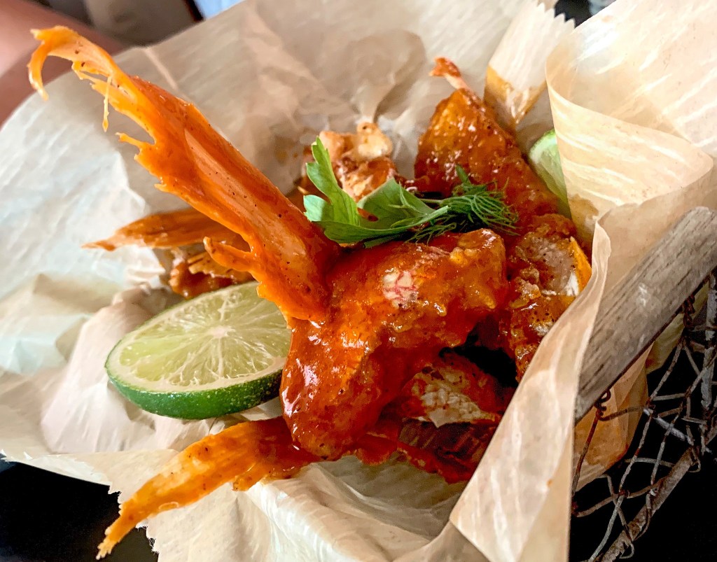 Die Stiltsville Buffalo Fish Wings holten mich schlagartig aus der verführerischen Illusion tief-dunkler Augen zurück in die knallharte kulinarische Realität. Ein genialer Midnight Snack. Kleine Bissen vom Bauch des Red Snappers mit den dazugehörigen Bauchflossen, eine hauchdünne lecker gewürzte Panade liebevoll frittiert und in einer pikanten Chili-Lime Buffalo Sauce gewendet. Unglaublich einfach und unglaublich lecker!