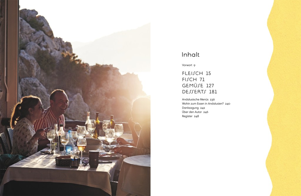 Es schließen sich noch Abschnitte für vier andalusische Menüs sowie für 24 Restaurantempfehlungen sowie einen abschließenden Dank an Unterstützter in der Buchherstellung an.