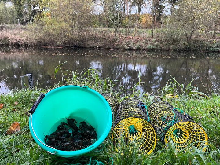 Im Oktober 2022 nutzte ich die wunderbare lange Warmphase dafür, mit meinen Reusen den Signalkrebsen nachzustellen. Dreimal warf ich drei Reusen über Nacht aus. Am ersten Morgen waren es 1.385 Gramm, in der zweiten 1.368 Gramm und in der dritten 925 Gramm. Signalkrebse gibt es im lokalen Flüsschen in nahezu unerschöpflichen Mengen.