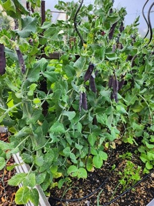 Bei Erbsen hatte ich bisher nur die Samen, einige Sprossen und die Blüten verwendet. Ein Rezept, in dem die Schoten verwendet wurden hat mich interessiert und der Garten gab die passenden Zutaten her.