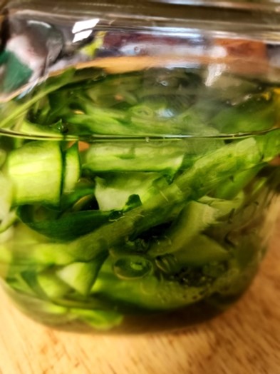 Hierzu später mehr. Der Gurkenschalen–Gin muss noch ruhen.