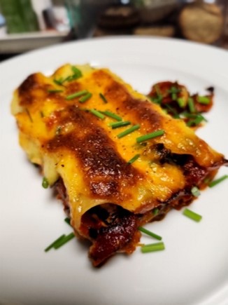 Eine für mich neue Verwendung von Mais. Röstmais – Hummus zu frischem Brot war die Vorspeise für die leckeren Mangold – Cannelloni mit dreierlei Käse. Für die Füllung habe ich noch zusätzlich Basilikum verwendet.
