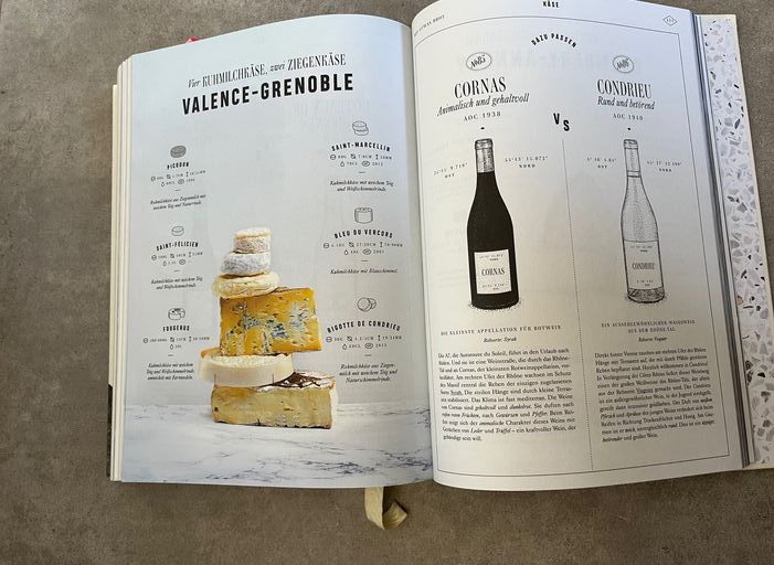 Besonders lobenswert sind die Weinempfehlungen zu jedem Rezept. Der aufmerksame Leser erhält hierbei schon nebenbei einen kleinen Sommelier-Kurs. Dass Käse in Frankreich einen ähnlichen Stellenwert genießt wie Klassische Musik in Deutschland versinnbildlicht schon Jean Anthelme Brillat-Savarins Bonmot, „Ein Essen ohne Käse ist wie eine schöne Frau, der ein Auge fehlt.“