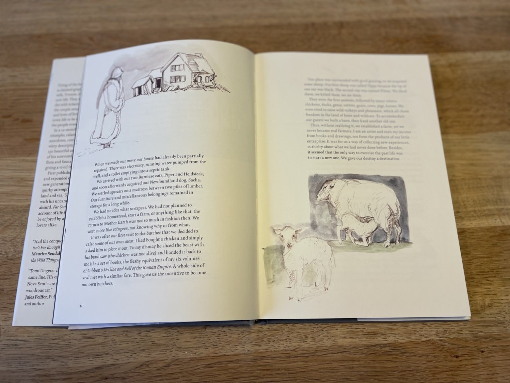 Bei Far Out Isn’t Far Enough handelt es sich um sowohl im künstlerischen als auch im literarischen Sinne skizzenhafte Memoiren fern jeder Kanada-Provinz-Romantik. Von Idylle keine Spur, wenn Ungerer über das erste Jahr reflektiert, welches er und seine schöne Frau an der wilden Atlantikküste Nova Scotias verbrachten.