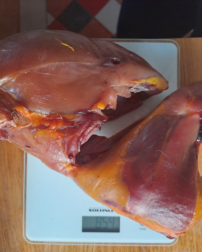 Zuhause angekommen wird der Fasan sofort ausgenommen. Die Zeiten als die Fasanen von Dezember bis März unaufgebrochen dem Dachboden hängen gelassen wurden, sind zum Glück vorbei. Ich gebe zu, dass ich den Fasan nicht rupfe sondern die Federn mit der Haut abziehe und so ist das Aufbrechen mit wenigen Handgriffen erledigt. Das gesäuberte Tier kommt für ein paar Tage in den Kühlschrank.