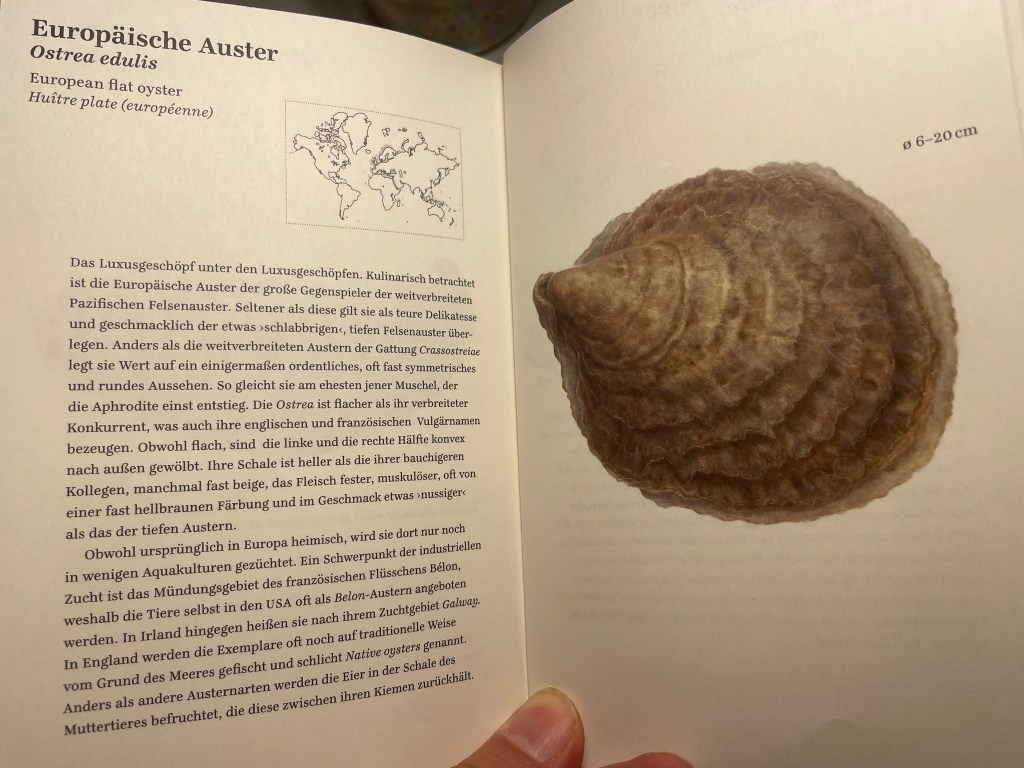 Wir reisen mit Auer rund um die Welt und besuchen Austernzuchten, Fischmärkte, wissenschaftliche Institute und Restaurants um Menschen kennenzulernen, die Austern fangen, zubereiten, züchten oder dazu forschen. Das schön gestaltete Buch beinhaltet Fotos, Illustrationen und Abbildungen historischer Stiche und Gemälde. Wie bei Hechte sind auf den letzten Seiten Steckbriefe mit Zeichnungen einiger Arten zu bestaunen.