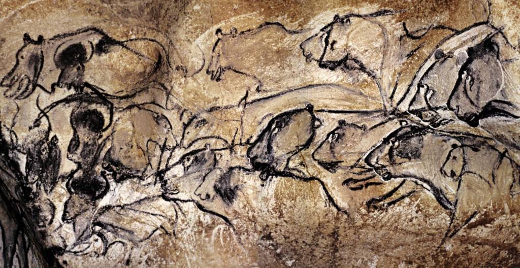 Noch spektakulärer sind die Darstellungen von Löwen in der 1994 entdeckten Höhle von Chauvet in Südfrankreich. Die flache Stirn, die geduckte Haltung und der starke Hals sind perfekt beobachtet, ein Meisterwerk, auch über die Jahrtausende hinweg. Dabei verschwimmen die Sillhouetten der Raubtiere ineinander wie ein wirkliches Rudel auf der Jagd. Es ist, als spüre man den vereinten Trieb nach Beute.