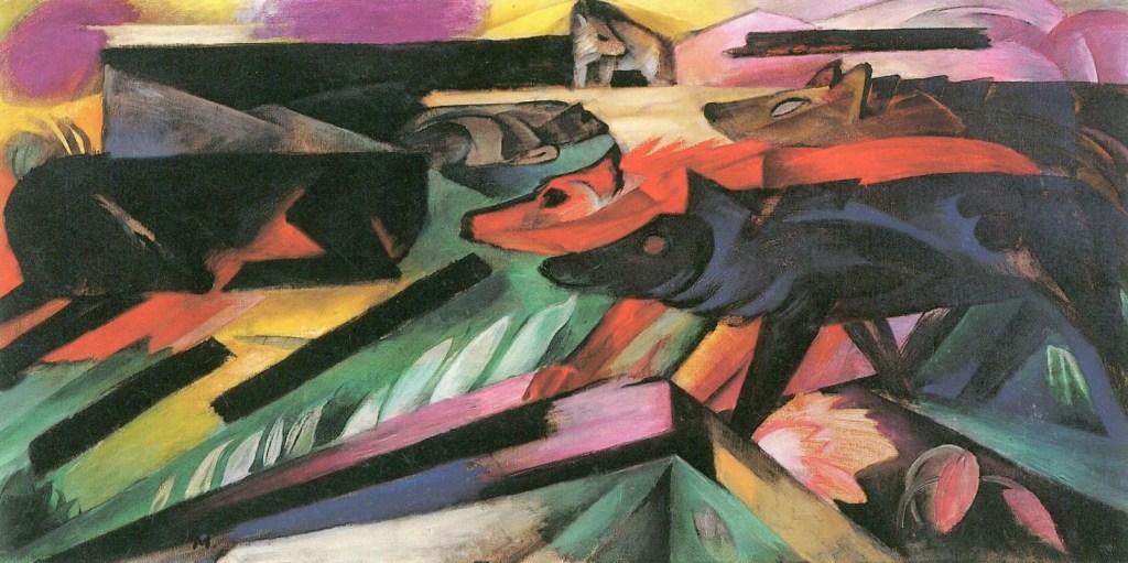 Diese Löwen betrachtet man nicht mit dem typischen Überlegenheitsgefühl des modernen Kulturmenschen („Ja, ganz nett für die Steinzeit“). Diese Löwen sind echte Kunst, heute wie vor 30.000 Jahren. Das Bild erinnert an die Wölfe von Franz Marc, die er in Erinnerung des Balkankrieges 1913 malen wird.